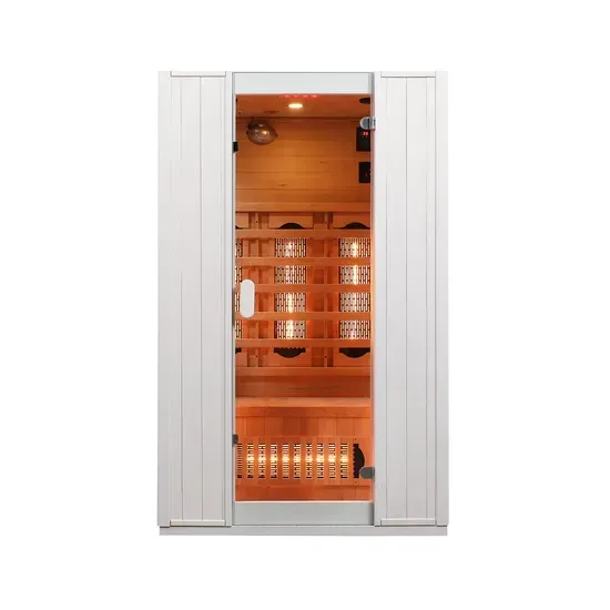 Tá an cábáin istigh déanta as adhmad hemlock, a thairgeann cobhsaíocht láidir, friotaíocht in aghaidh warping, boladh íseal, agus uigeacht adhmaid nádúrtha álainn - rud a fhágann go bhfuil sé oiriúnach go háirithe le haghaidh úsáid fadtéarmach sabhna. Is struchtúr cábáin dhá-dhuine neamhspleách é an dearadh foriomlán le héifeachtacht spáis ard, atá oiriúnach chun crios folláine nó aisghabhála tiomnaithe a chruthú i dtimpeallachtaí cónaithe agus tráchtála araon.